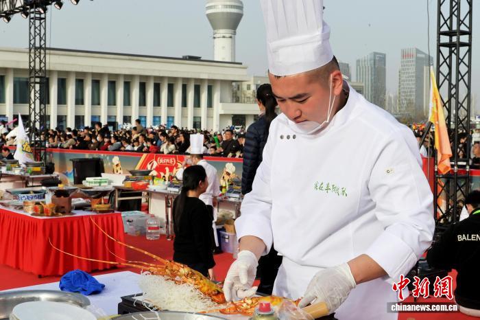 图为阜阳队厨师正在造做美食。中新社记者 弛强 摄