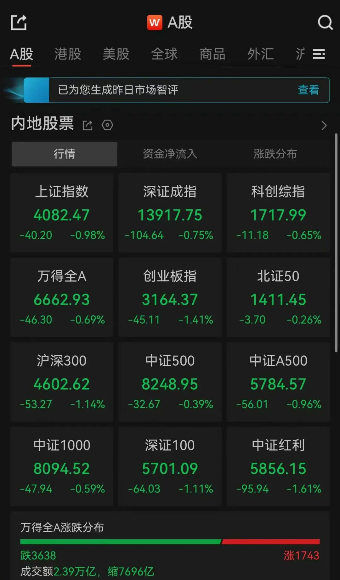4日,A股3年夜指数矮启,随即震动调剂。Wind数据表现,停止支盘,上证指数涨0.98%,深证成指跌0.75%,创业板指跌1.41%。