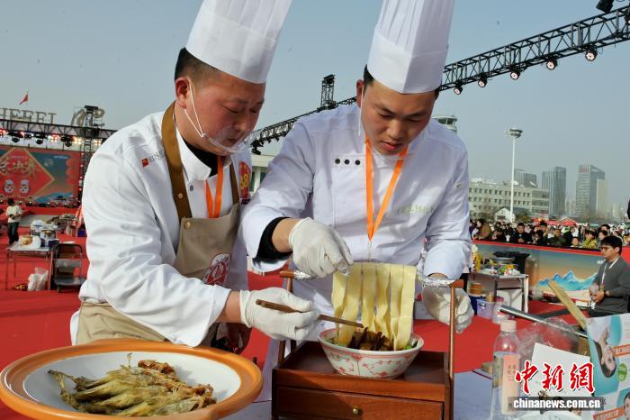 图为阜阳队厨师正在造做美食。中新社记者 弛强 摄